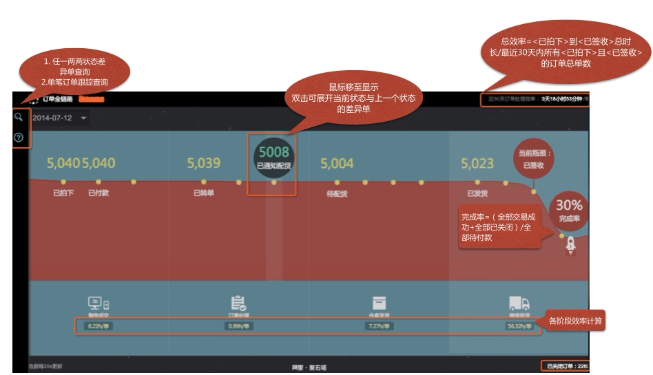 b、四大核心阶段平均效率计算,近30天订单总处理效率(店铺发货速度)