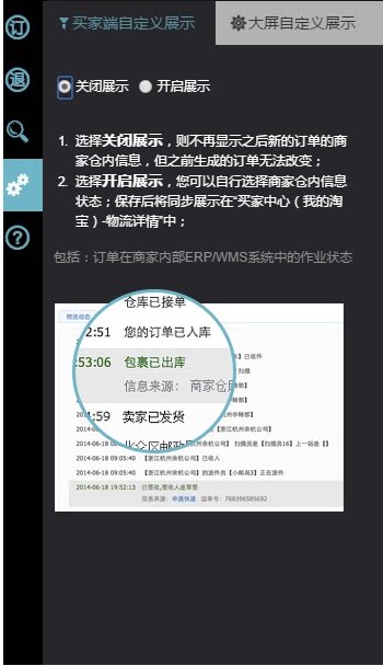 商家可自行选择开启消费者端展示,并可选择需要展示的状态进行展示。