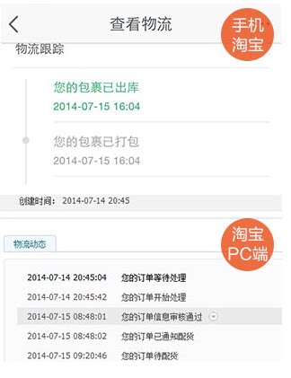 买家(只要有仓内信息,点击查看物流即可看到)通过我的淘宝-买家中心-查看物流及手机淘宝-物流跟踪可查看到;