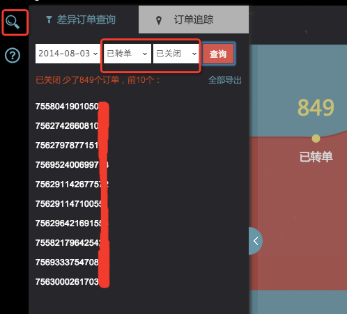查询某个状态当前已处理的订单明细,选中当前状态+已关闭状态的差异单即当前状态已处理明细。