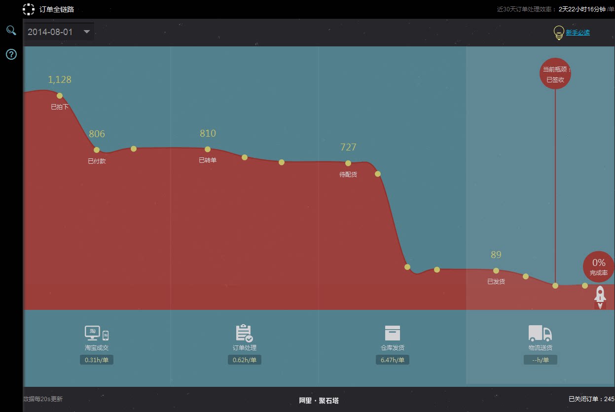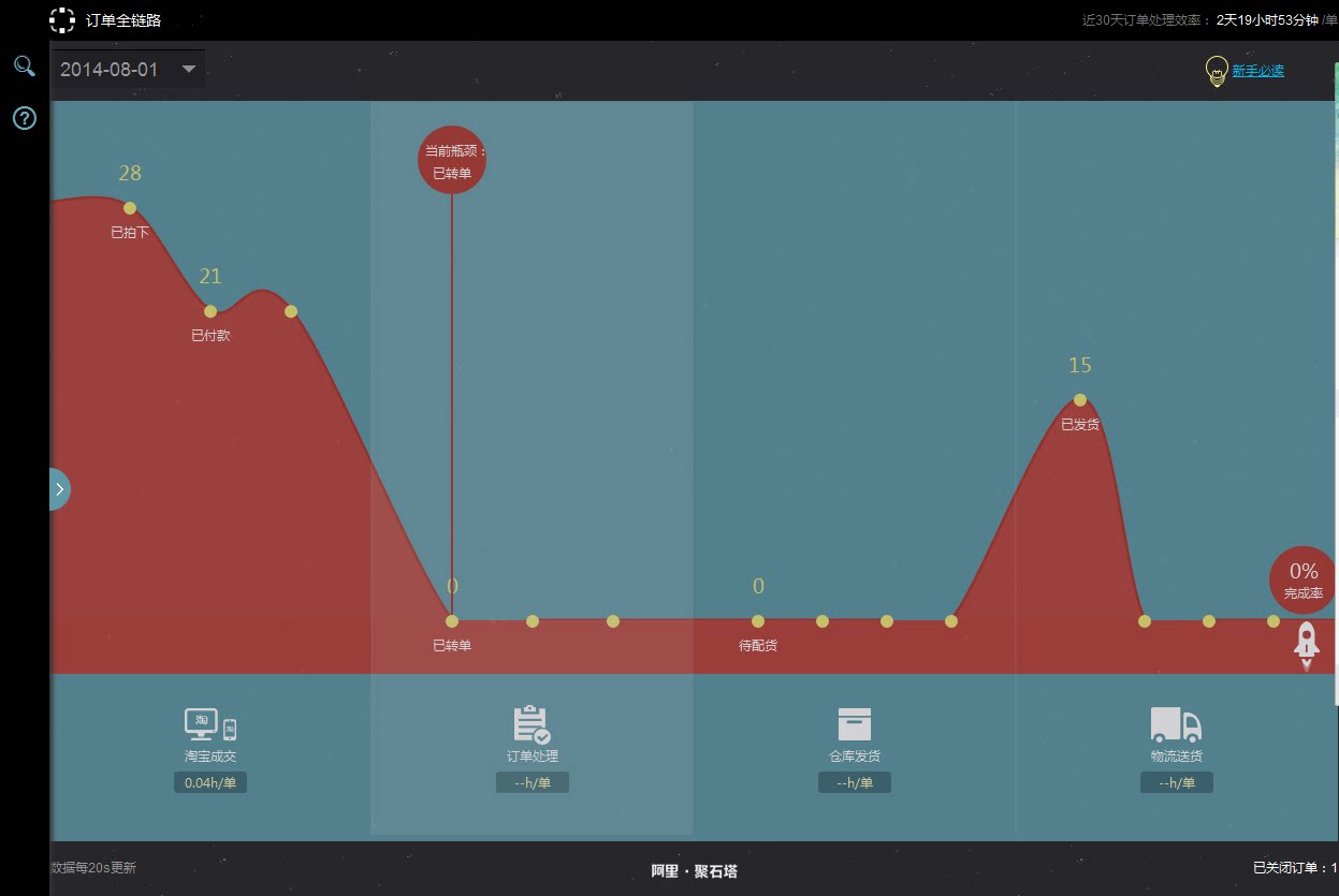 “订单全链路“数据来源于淘宝和商家自身系统。淘宝成交、物流送货两段数据直接来自淘宝平台实时数据,订单处理、仓库发货两段数据来源于商家自身ERP系统或订单作业工具的数据(从已转单到已出库环节);因而订单处理、仓库发货两个流程的数据若有缺失或不准确请咨询相应服务商。